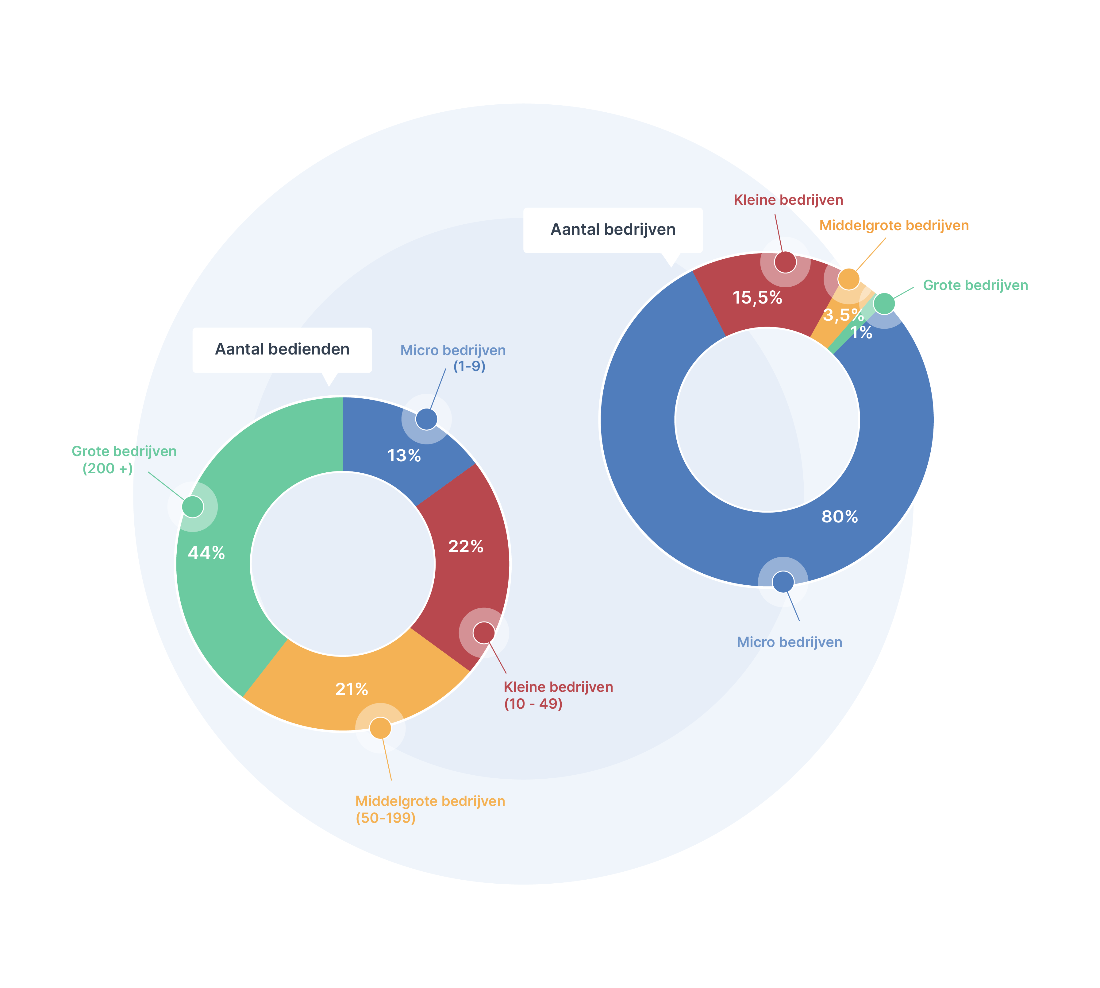 Onze sector telt enkele zeer grote logistieke spelers. Zij vertegenwoordigen 44% van het totale aantal bedienden. Het gros van onze sector bestaat uit kleinere bedrijven.